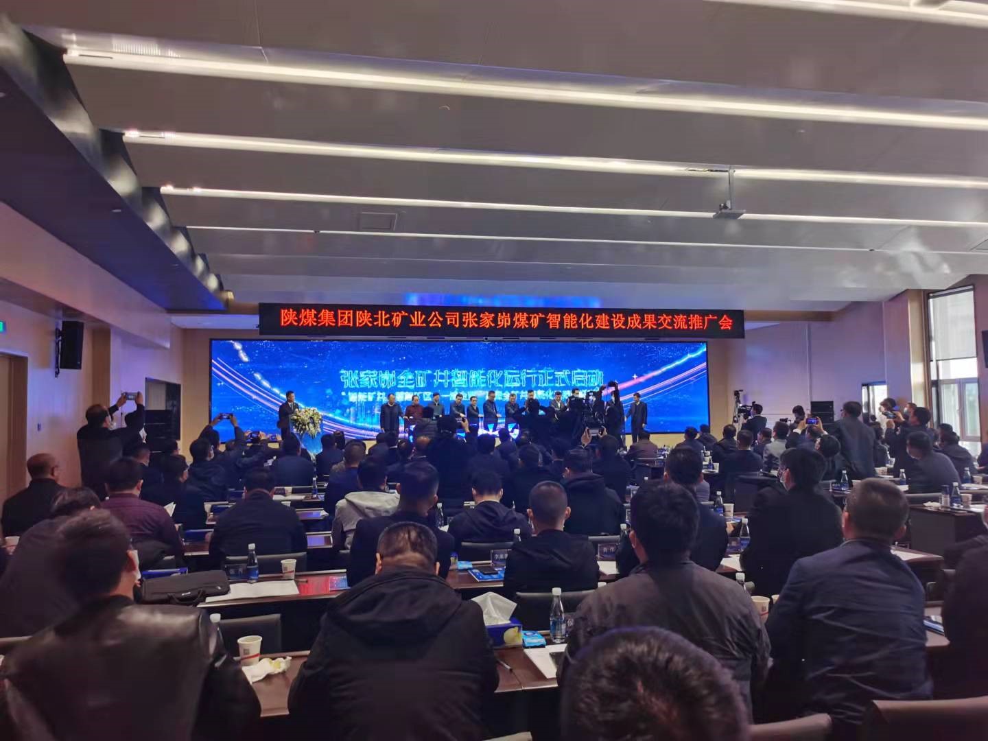 2021年10月19日,中國煤炭工業協會組織有關專家在陜西省神木市召開了“智能化煤礦巨系統關鍵技術裝備研發與示范應用”科技成果鑒定及交流推廣會。中國煤炭工業協會副會長、中國煤炭學會理事長劉峰,中國工程院院士彭蘇萍、武強、王雙明、王國法、中國科學院院士何滿朝,北京科技大學校長楊仁樹,中國礦業大學校長宋學鋒,中國礦業大學(北京)校長葛世榮,遼寧工程技術大學黨委書記、校長梁冰,中煤能源集團科技發展部管曾倫,陜西省信息研究院、西安電子科技大學張小平,陜煤集團黨委委員、副總經理尚建選、王世斌,陜北礦業公司黨委書記、董事長、總經理郭佐寧,副總經理遲寶鎖、牛虎明等領導參加會議。