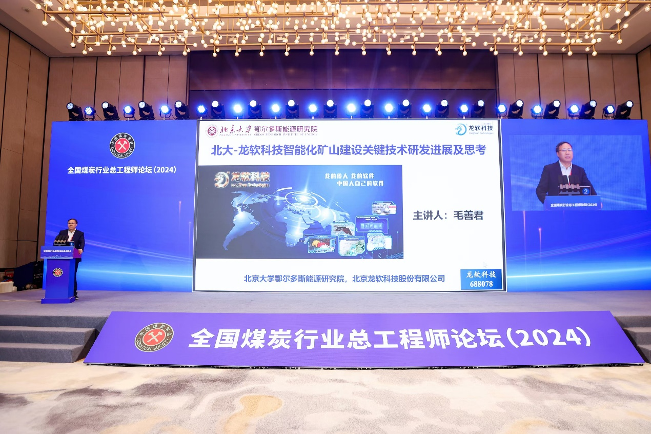 在為期兩天的論壇中,多位嘉賓發(fā)表了精彩的演講和報告。其中,北京大學教授、北京龍軟科技股份有限公司董事長、北大鄂爾多斯能源研究院首席科學家毛善君的主旨報告《智能化礦山建設(shè)關(guān)鍵技術(shù)研發(fā)進展及思考》尤為引人注目。毛善君教授詳細介紹了龍軟科技-北京大學團隊在智能化煤礦建設(shè)方面的創(chuàng)新成果和實踐經(jīng)驗,提出了高級智能化礦井建設(shè)的6626工程,并分享了團隊在煤礦裝備智能化、地測透明化、分析在線化、智能系統(tǒng)化、控制協(xié)同化、生產(chǎn)綠色化等方面取得的顯著成果。