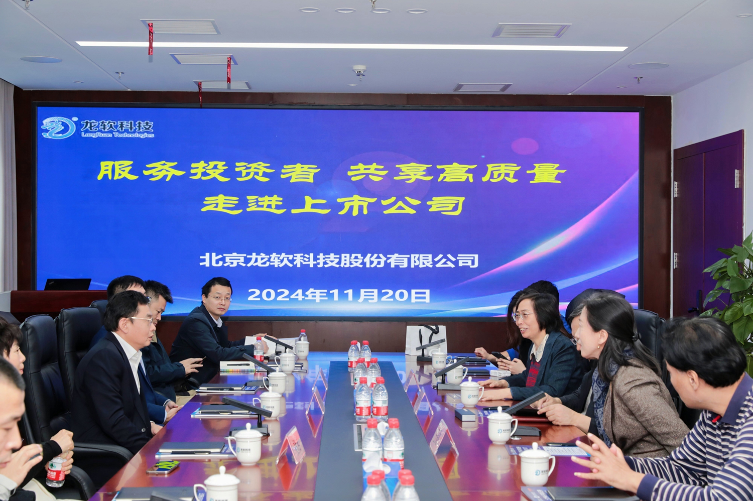 為深入貫徹落實中央金融工作會議精神和新“國九條”部署要求,加強投資者關系管理、展現公司內在價值,更好引導投資者認識公司投資價值、積極行使股東權利,搭建上市公司與投資者溝通和交流平臺,2024年11月20日,在上海證券交易所的指導下,公司聯合平安證券共同舉辦以“服務投資者,共享高質量”為主題的“我是股東”投資者走進上市公司活動,共有約30名投資者到場參與本次活動。龍軟科技董事長毛善君先生、董事會秘書兼財務總監郭俊英女士、平安證券北京分公司負責人朱松鈞先生、平安證券北京分公司投資顧問總監郭海華先生等領導出席了本次交流活動。