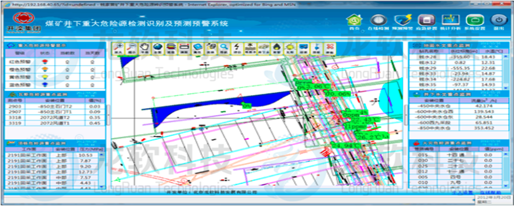 基于煤礦水、火、瓦斯和頂板等安全監(jiān)控系統(tǒng),實現(xiàn)重大危險源在線檢測,實時采集重大危險源數(shù)據(jù),建立重大危險源指標體系庫,運用先進的預(yù)警模型,實現(xiàn)對煤礦井下水、火、瓦斯和頂板等重大危險源的集成管理和超前預(yù)警。提高煤礦重大危險源預(yù)警能力,降低重大危險源事故發(fā)生率,進而提高煤礦整體安全管理水平。